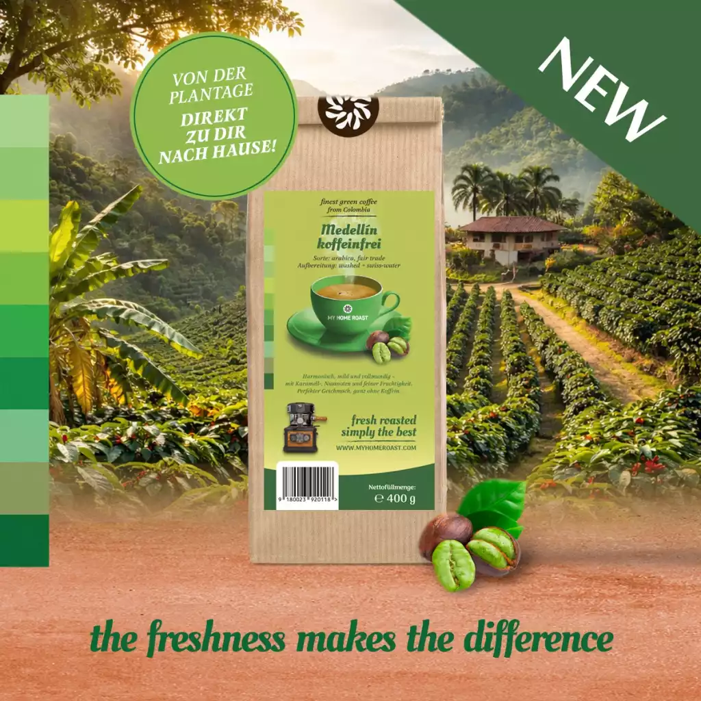 Dieser entkoffeinierte Kaffee stammt aus den fruchtbaren Höhenlagen rund um Medellin, einer der renommiertesten Kaffeeregionen Kolumbiens. Auf 1.400 bis 1.800 Metern wachsen die Kaffeepflanzen auf nährstoffreichen Vulkanböden, umgeben von einem stabilen Mikroklima, das für eine gleichmäßige Reifung der Kaffeekirschen sorgt. Das Ergebnis sind besonders aromatische Bohnen mit feiner Säure und natürlicher Süße.