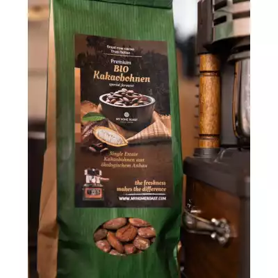 Kakao wird als eines der ganz besonderen Superfood Lebensmittel bezeichnet. Laut Alexander von Humboldt, hat die Natur kein zweites Mal, eine solche Fülle der wertvollsten Nährstoffe auf einem so kleinen Raum zusammengedrängt wie gerade bei der Kakaobohne. Unsere Bio Kakaobohnen sind eine Criolo-Kreuzung, sie wachsen inmitten wilder Waldgärten in Südbelize und sind charakteristisch für eine komplexe Aromenvielfalt sowie, schonend frisch geröstet, eine intensive Süße im Geschmack. Sie eignen sich hervorragend als Superfoodsnack, Zusatz für Müsli und Smoothies, zur Garnierung von Käseplatten und generell zur Verfeinerung beim Braten und Backen. Ein besonderer Genuss ist die Zubereitung heißer Kakaogetränke direkt aus frisch gerösteten ganzen Kakaobohnen.